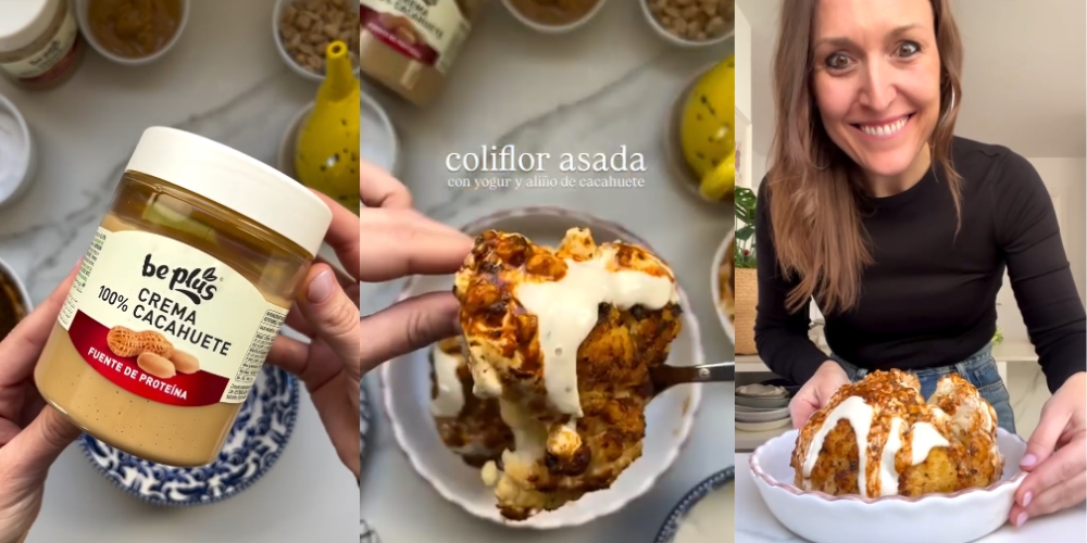 Coliflor asada con crema de yogur y crema de cacahuetes Be Plus
