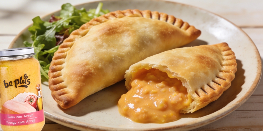 El tarrito de pollo con arroz Be Plus se transforma aquí en un relleno suave y equilibrado que, combinado con verduras salteadas, gana textura y profundidad de sabor. El resultado son unas empanadillas ligeras, jugosas por dentro y doradas por fuera, perfectas para una cena rápida o para llevar.