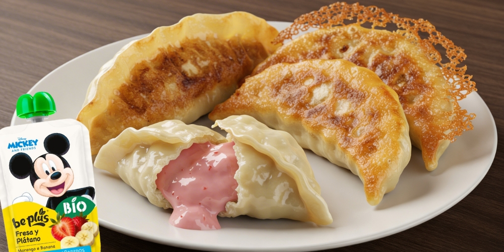 Esta receta transforma el pouch de fresa y plátano Be Plus en algo completamente inesperado: un relleno suave y natural para unas gyozas dulces con textura crujiente por fuera y cremosa por dentro.