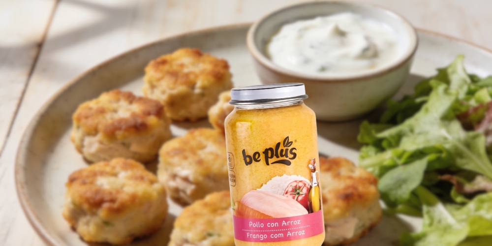 Una forma original de transformar el tarrito de pollo con arroz Be Plus en un plato divertido y completo. Al mezclarlo con avena y especias se obtiene una masa moldeable que, al cocinarse, queda dorada por fuera y muy tierna por dentro. Perfectos para una cena ligera o para picar algo nutritivo sin complicaciones.